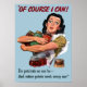 This vintage World War Two poster features a housewife holding canned goods. It declares, "Of course I can! I'm patriotic as can be -- And ration points won't worry me!" Celebrate American and WW2 History with this digitally restored vintage war poster product from The War Is Hell Store.