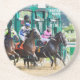 BREAKING FROM THE STARTING GATE AT HISTORIC SARATOGA RACECOURSE. Packed House in the pink silks with jockey Ricardo Santana Jr. breaks in front as the grounds keepers look on.