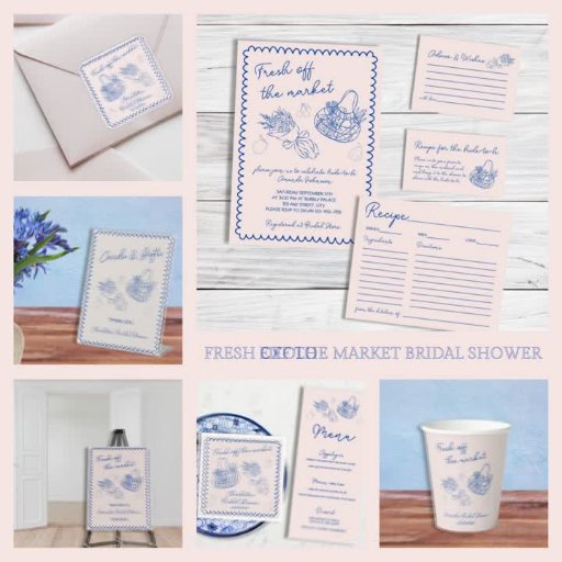 dd a whimsical touch to your bridal shower with our whimsical "Fresh Off the Market" stickers, designed to complement a charming farmers market theme. Featuring a beige and blue colour palette, this design showcases hand-drawn doodles of a grocery bag, flower bouquet, and playful fruits, all framed with a wavy scribble border. The handwritten font adds a personal, cozy feel, making these stickers perfect for sealing invitations, decorating party favours, or adding a unique flair to your event decor. Ideal for rustic, garden, or country-themed celebrations, these versatile stickers bring a stylish and cohesive look to your bridal shower. Create a delightful impression with this trendy, fun, and practical addition to your special day!