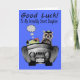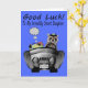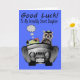 Wish your incredibly smart daughter who's going off to college good luck with an adorable smiling raccoon driving a shiny sports car packed full of luggage, books and a sleeping bag. Background is a pretty blue.