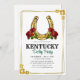 Modern Horse Race Derby Party Invitation with an illustration of a race horse with jockey and striped pattern on the back. All text elements can be changed so this design can be used for other events too: classy equestrian wedding invitation, horse birthday party, derby watch party, horse barn opening and more. Background, colour of the illustration and text colours can be changed using the design tool!