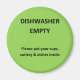 Fed up with confusion over the office dishwasher? Is it full? Is it empty? Always finding the wash interrupted by people opening it mid-wash? Then look no further, here is a handy answer to your problem!