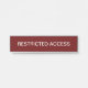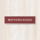 Restricted Access wall or door signs in red and white with ability to customize the text or background colour. Designed to restrict access to designated areas of your office or warehouse for both safety and privacy purposes in a budget friendly.