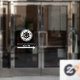 Office Window Cling with shutter image highlighting social icon and icon monogram.