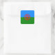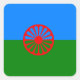 Official Romany gypsy traveller flag of green and blue representing the earth and sky with a red wagon wheel, representing travel. Personalize this design by deleting or changing the text.