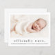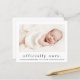 Officially Ours Photo Adoption Announcement featuring modern type and a large horizontal photo on the front. The back has a large full name header and personal message from the family. Click the edit button to customize this design with your photos and details.
