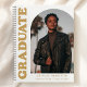 Célébrez le jalon de votre diplômé avec ce livre d’or élégant et personnalisé. Doté d'une photo de l'étudiant sur le devant avec un cadre design en arc de cercle, ce livre d'invités est conçu pour rendre les souvenirs derniers. "Graduate" est affiché verticalement en gras doré rétro lettrage sur un arrière - plan blanc classique, ajoutant une touche sophistiquée. Sous le titre, personnalisez le livre d'or avec le nom du diplômé, le nom de l'école et l'année d'études pour un look personnalisé. Le fond du livre d'or est orné d'un collage de 3 photos, parfait pour présenter des moments encore plus mémorables de la journée spéciale. Ce livre d'or est idéal pour les diplômés du secondaire et du collège, offrant un souvenir intemporel à chérir pour les années à venir. Parfait pour recueillir des messages sincères de la famille et des amis tout en préservant les souvenirs de cette réussite inoubliable.