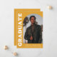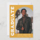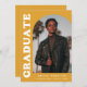 Stylish and trendy graduation announcement featuring the graduate's photo on the front with an offset arch photo frame. "Graduate" is displayed in bold white retro lettering on a yellow-orange background. Personalize the front of the arch photo graduation announcement by adding the graduate's name, school, and graduation year. The card reverses to display an additional 3 photos with space for custom text such as future college plans, career plans, graduation party details, etc. The yellow-orange graduation announcement is perfect for both high school and college graduates.