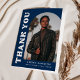 Stylish and trendy graduation thank you card featuring your photo in an offset arch frame with a bold navy blue background. "Thank You" is showcased in retro-inspired white lettering for a fun, modern touch. Personalize the front with your name, school, and graduation year. The inside offers space for a heartfelt typed or handwritten message, and the back includes a 3-photo collage to highlight more special moments. A unique and memorable way to express your gratitude.