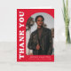 Stylish and trendy graduation thank you card featuring the graduate’s photo in an offset arch frame on a vibrant red background. “Thank You” is displayed in bold white retro lettering for a modern and striking look. Personalize the front with the graduate’s name, school, and graduation year. The inside of the red graduation thank you card offers space for your typed or handwritten message, while the back showcases a 3-photo collage. Perfect for high school and college graduates, this custom photo thank you card makes a memorable way to say thanks.