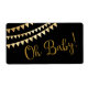 Oh Baby baby shower bouteille d'eau étiquettes avec jolie bannière or et parties scintillant or Oh Baby script sur un arrière - plan noir. Ces étiquettes de bouteilles d'eau de baby shower ne sont pas à l'épreuve de l'eau.