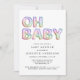 This minimal modern baby shower invitation features "OH BABY" written in illustrations of balloons in an iridescent rainbow of paste, blue, green, pink, purple and orange. You can easily personalize with the shower details and customize "Baby Shower" to "Baby Boy Shower" or "Baby Girl Shower" if desired.