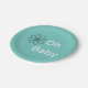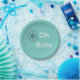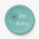 Oh Baby Blue Floral Daisy Paper Plates—Simple Sweet Design in Teal & Grey Gender-Neutral Colours For A Boy Or Girl. Ideal for your baby shower/baby brunch decorations.