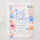 A watercolor baby shower invitation with blue, pink and peach flowers against an off-white background. Perfect for spring or any time of the year. (<a href='https://www.freepik.com/free-vector/baby-shower-invitation-in-watercolor-style_1747052.htm'>Designed by Freepik</a>). <br/><br/>The card is easy to customize with your wording, font, font colour and choice of six paper types.<br/><br/>Not exactly what you're looking for? All our products can be custom designed to meet your needs at no extra charge.<br/><br/>Simply contact us at askcottonlamb@gmail.com<br/><br/>Coordinating products available: