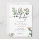 Elegant calligraphy and watercolor floral cactus baby shower invitation.