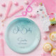 Oh baby cyan aqua blue baby shower template printed custom paper plates personalized baby shower tableware simple abstract watercolor modern baby shower printed plates