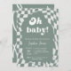 Oh Baby! Dusty Green Chequered | Gingham | Baby Shower Invitations Step into the charm of the '70s with our Oh Baby! Dusty Green Chequered | Gingham | baby shower invitations, perfectly capturing the retro boho chic aesthetic. The design features midcentury modern arches, groovy typography, and a delightful dusty green chequered backdrop, evoking the spirit of the '70s era. The dusty green, grey, and grey hues add a touch of nostalgia. Inside the oval frame, event details are elegantly presented in a chic and straightforward layout. The introduction, "Oh Baby!" in groovy typography, precedes the parents' names scripted in casual boho handwriting. These invitations are tailor-made for couples' showers, offering flexibility for personalized names. Explore customization options through Zazzle's Design Tool, allowing font edits, size changes, placement adjustments, or the inclusion of additional information/images. Ideal for a spring or summer celebration, these invites reflect an ordered design, emphasizing a careful check for typos before purchase. Discover more matching stationery in the collection link or explore our store for a variety of groovy baby shower invitations. Any questions? I'm here to help!
