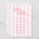 Elegant pink and white striped baby shower invitation cards for a baby girl offer a timeless design perfect for celebrating a new arrival. Featuring soft pastel pink vertical stripes on a crisp white background, the layout highlights graceful serif and script fonts that create a sophisticated and heartwarming presentation. The classic “Oh Baby” calligraphy header draws attention immediately, while the well-balanced typography beneath clearly outlines all the event details. This customizable design exudes charm and simplicity, making it ideal for traditional baby showers or gender-specific celebrations. Perfect for those seeking refined baby shower invitations with soft pink themes and minimalist design elements. Available as printed cards or an instant digital download.