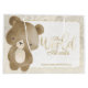 Oh Baby typography on a golden world map and white transparent overlay with gold fringe. the "World Awaits" on reverse side. Personalize name and date and event.