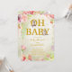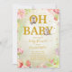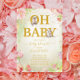 Watercolor illustration of adorable baby cats in front of "oh baby" in gold. Lovely golden glitter stars surround these too cute animal creatures that say "meow!". Celebrate the baby shower in honour of the mother-to-be.