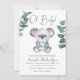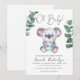 We can bearly wait baby shower invitation. Cute watercolor little koala bear with bottle of milk and branch eucalyptus. Matching items available.