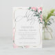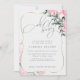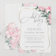 Oh Baby! Pink Floral Spray Surrounds this Chic Baby Shower invitation - this features hand painted pink roses in the corners with a gold framed bracket in the centre - all with an eggshell linen textured background - modern calligraphy sets this off to make it truly chic and romantic . Original design ©WhimsicalArtwork™