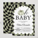 Oh Baby Sage Green Chequered Baby Shower Invitation