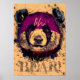 funny graphic and drawn design of a cool panda in black, burgundy and golden colors with "OH BEAR" funny quote Poster.