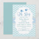This watercolor clouds oh boy baby boy shower invitation features baby boy shoes in blue colour with geometrical pattern in mint green colour