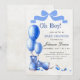 Featuring adorable watercolor baby shoes, floating blue balloons, and soft elegant tones, this design creates a joyful and welcoming atmosphere for a memorable baby shower celebration.