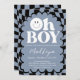 Oh Boy! Blue Checkered Happy Face Baby Shower Invitation