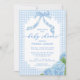 Oh Boy Blue Gingham Plaid Hydrangea Baby Shower Invitation