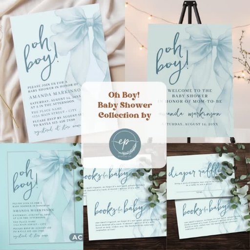 Oh Boy! Blue Watercolor Bow Baby ShowerDesigned by Ellen W.