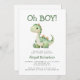 Oh Boy Cute Green Dinosaur QR Code Baby Shower Invitation