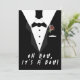 Design front features the look of a tuxedo as background to the words, "Oh Boy, It's a Boy!" Back displays your information in black font against a white background. Designed to coordinate with the "OH BOY" Baby shower collection.
