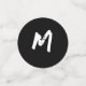 Design on large confetti features the look of a tuxedo as background to the words, "Oh Boy!" Text is customizable and may be replaced with a name or other wording. Reverse is black and displays name for baby in white. Medium sized confetti design features image of a black bowtie against white background. Opposite side bears image of burgundy-coloured boutonniere. Design on small confetti features black background to monogram for Babyin white lettering on one side, colours reversed on opposite side. Designed to coordinate with the "Oh Boy, It's a Boy!" Baby Shower collection.