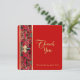 This card has a banner of poinsettia flowers accented with gold. The words across the bottom: “Oh come, let us adore Him!” (from the famous Christmas hymn). Add your signature on the back to send out your beautiful thank you cards!