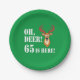 Oh Deer 65 Is Here featuring a cartoon deer. A great design for a hunter or animal lover turning sixty. It features a funny, cartoon deer looking surprised. Great plates for a 65th party.