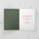 This fun holiday greeting card features a white silhouette deer head and the words, "Oh Dear! Christmas is Here!" Inside you'll find a green tartan plaid design and a message reminding us to slow down and appreciate loved ones during this busy time.