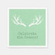 Holiday party napkins with a deer in snow design on a green background. You can customize the napkins with your own message. Matches other items in a complete party set.