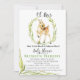 Watercolor baby shower invitation features a baby deer in a ring of greenery . It reads, "Oh Deer, Our Little Buck is Almost Here!" Personalize with your party information and customize the font style, size or colour. Visit our store to view other items in this collection to make your celebration personalized.