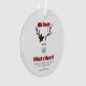 Oh Deer What A Year 2023 Funny Quote Christmas Ornament has a modern design with a fun reindeer face wearing a face mask and a dark burgundy nose with a holly berry leaf with matching dark red berries are on the antlers. The background is white. The theme and funny quote is "Oh Dear What A Year" in burgundy red bold curvy retro lettering. Custom year is on the reindeer's mask and "2023" as shown but you can simply change it on template if needed. A template has been made available to customize for family or friends. Design is on both sides.