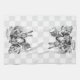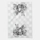 16” x 24” kitchen towel with a vintage black and white Alice in Wonderland image of the Mad Hatter and March Hare stuffing Dormouse into a teapot on a grey and white chequerboard background. See matching paper cocktail napkin, cloth placemat, paper placemat and coasters. See the entire Wonderland Kitchen Towel collection in the FOOD/BEV | Linens section.