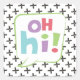 Hi there! This big speech bubble is filled with a fun font to say "oh hi". Lots of colours here with lime green, soft pink, purple and a turquoise blue. Background pattern of grunge plus signs for a rough air. Lovely casual design perfect for teen girls as well as their mothers, grandmothers and aunts.