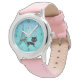 Oh la la chic Paris cat watch for girls with the Eiffel tower and string lights on a blue damask background. Some graphics by Origins Digital Curio at www.etsy.com/shop/OriginsDigitalCurio.