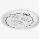 The plate is personalized for the guest of honor, featuring the text "TAYLOR'S BRIDAL SHOWER" in a mix of bold serif and clean sans-serif typography. Your event date is displayed at the bottom in a crisp, contemporary font. With its timeless black and white monochrome palette, these plates are the perfect fit for a stylish brunch, a Parisian-themed tea party, or a contemporary luncheon. These high-quality plates offer a practical yet beautiful way to serve appetizers, desserts, or small bites while maintaining a polished aesthetic.