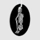 Oh My Skeleton assis la tête en repos dans sa main sur un ornement de Noël.