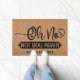 Add a touch of humour to your doorstep with this personalized "Oh No Not You Again" doormat. The faux burlap background adds a rustic charm, while the playful message and customizable family name create a funny and inviting atmosphere. This durable doormat is perfect for adding a touch of personality and a dash of sarcasm to your porch or entryway.
