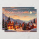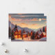 A cute Christmas village at night all lit up with Christmas lights and snow topped mountains. A pretty festive card that you can add your own custom holiday message and names to!