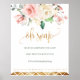 Wedding sign "oh snap" with elegant watercolor pink cream roses, greenery foliage and golden effect decorative ornament on the bottom.